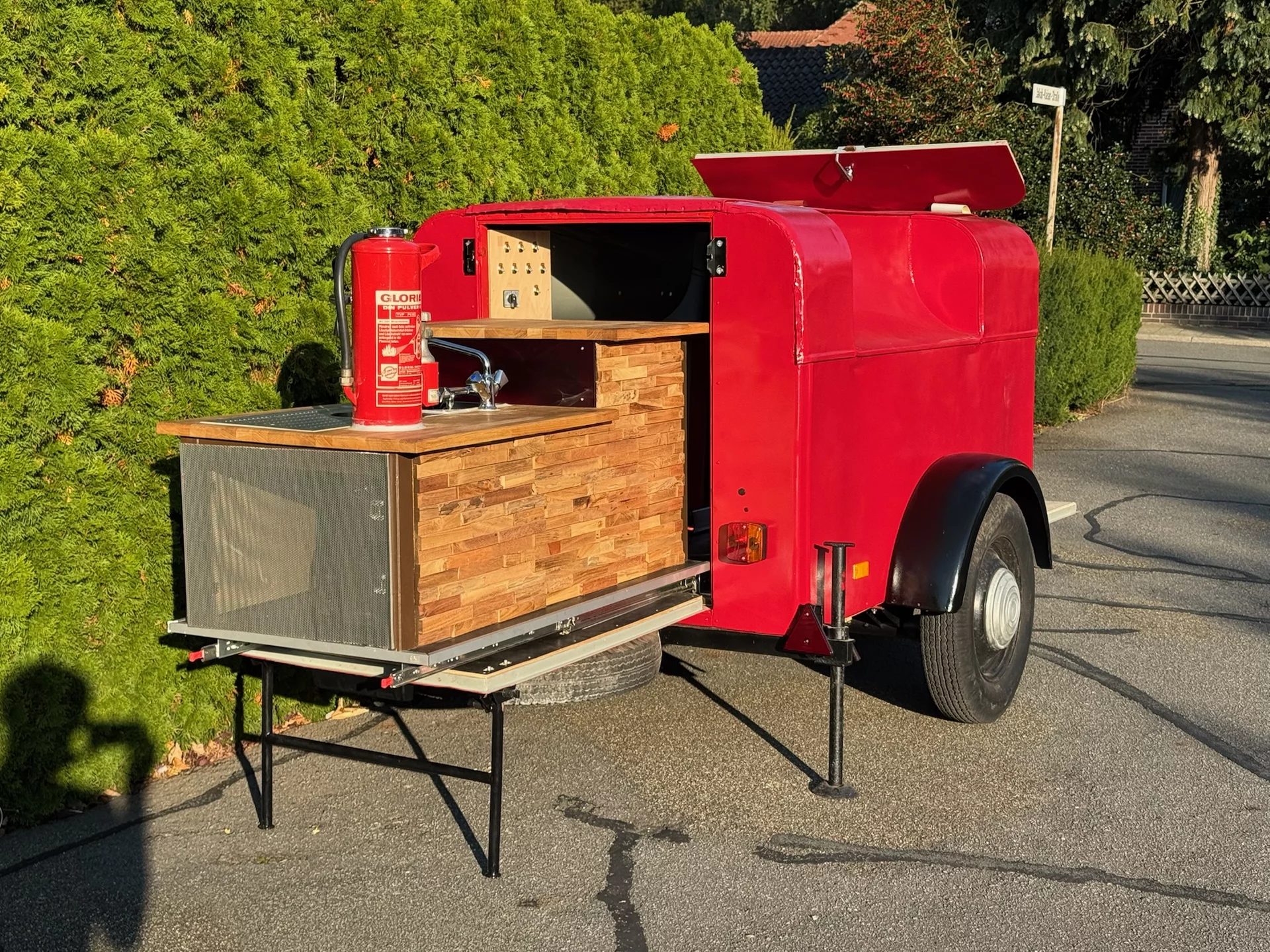Alles fing an bei einer Geburtstagsparty im Sommer 2023 an. Wir saßen gemütlich mit dem ein oder anderen Kaltgetränk im Garten und Leander hatte sich nicht lumpen lassen und eine Zapfanlage organisiert. Diese war verbaut in einen alten Feuerwehranhänger aus DDR-Zeiten. Nachdem nun schon einige Getränke geflossen waren stellten wir fest, dass dieser Anhänger zwar ganz nett sein, aber noch die ein oder andere Stelle, sowohl optisch, wie auch technisch, aufwies, die uns nicht überzeugte. Das mussten wir doch besser hinbekommen... Gesagt, getan. Noch am selben Abend durchsuchten wir Kleinanzeigen nach einem passenden Unterbau. Einige Tage später hatten wir dann einen gefunden, baugleich dem, der schon bei besagter Geburtstagsparty zum Einsatz kam. Bevor wir länger drüber nachdenken konnten und uns eventuell noch Gründe eingefallen wären, warum wir den Anhänger doch nicht kaufen sollten (da hätte es einige gegeben, aber dazu später mehr), haben wir zugeschlagen.